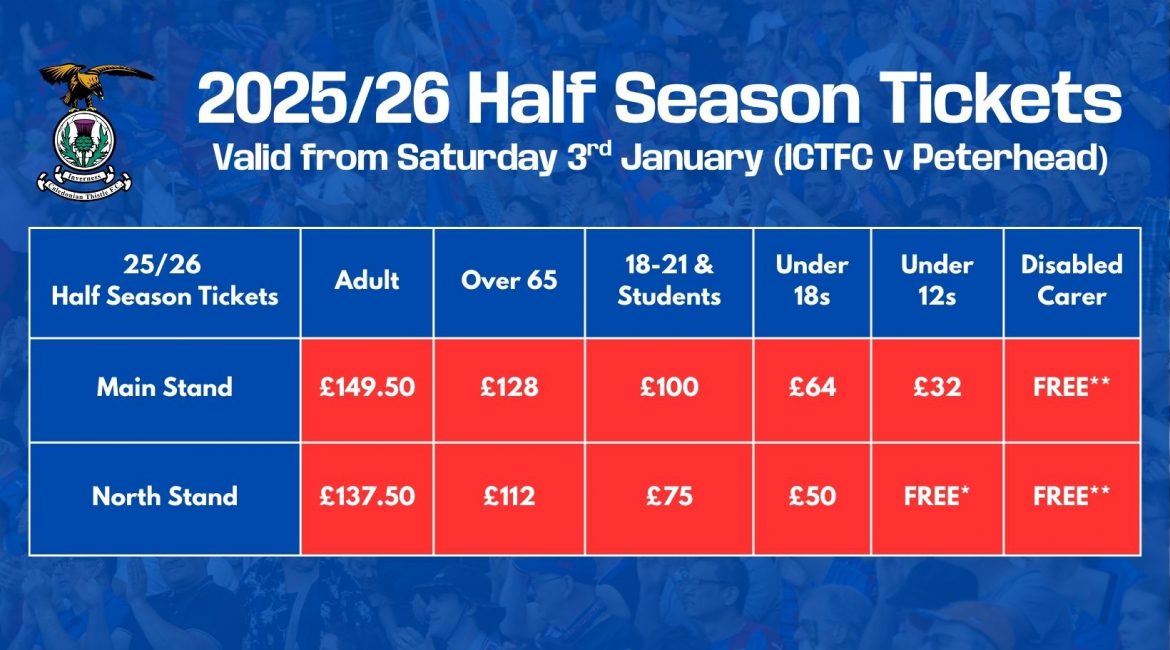 2025/26 Half Season Tickets are available now from eticketing.co.uk/ictfc
