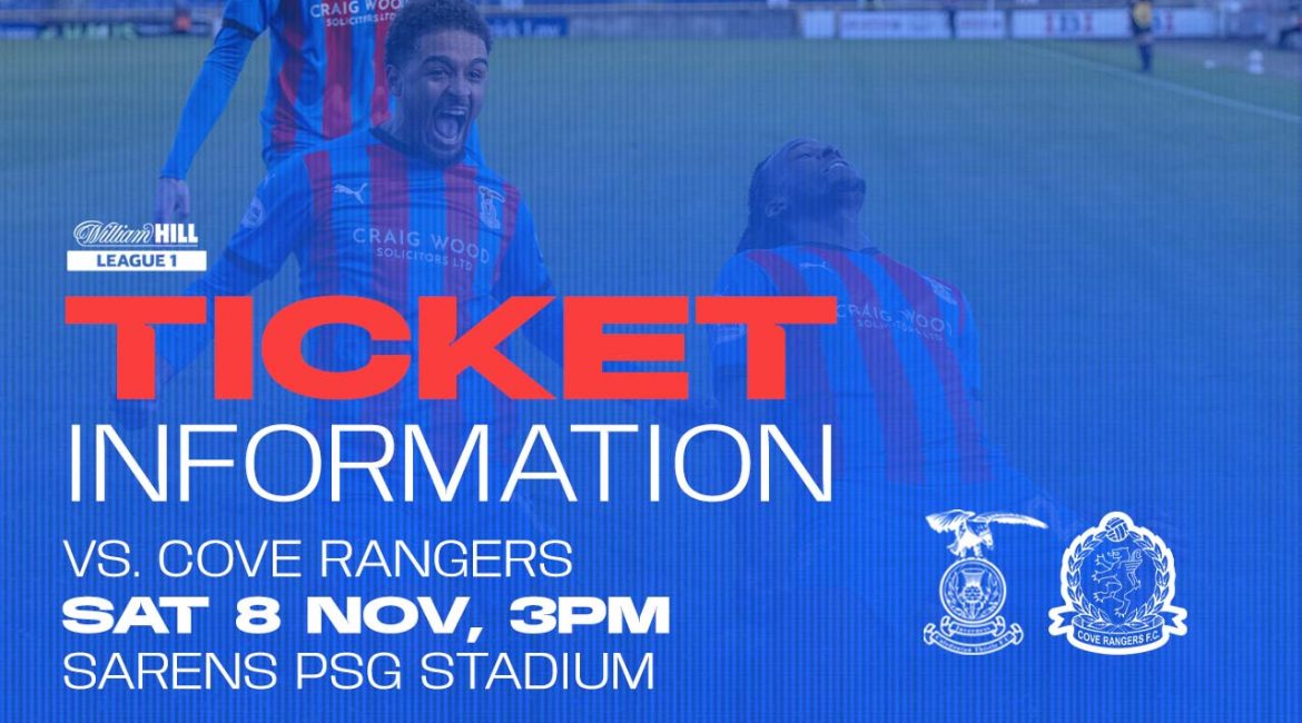 Tickets for our home William Hill League 1 match against Cove Rangers on Saturday 8 November are on sale now