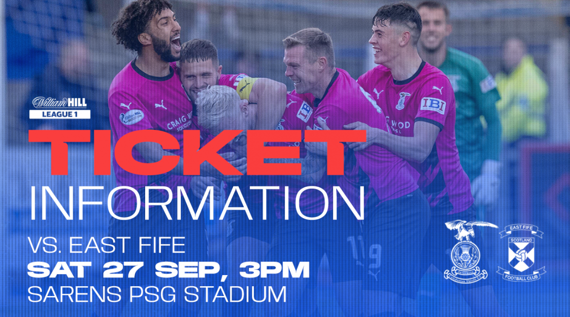 Tickets for our home William Hill League 1 match against East Fife on Saturday 27 September are on sale now
